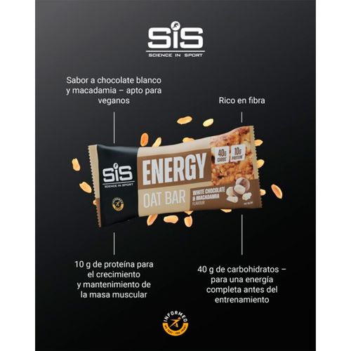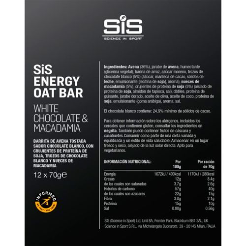 Caja SIS Barra Avena Energy Chocolate Blanco Macadamia 70g 12U