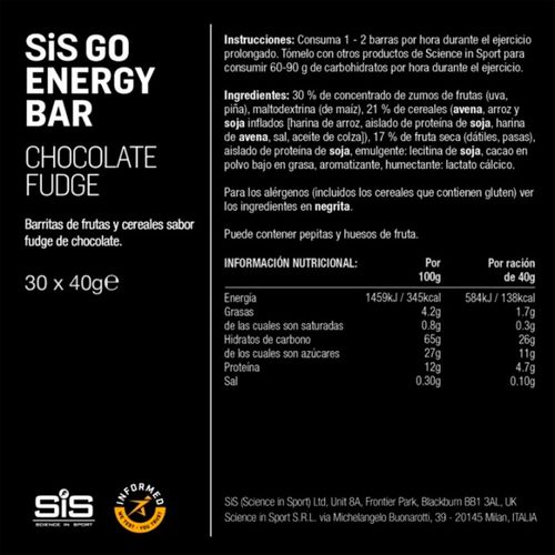 Caja SIS Barra Go Energy Chocolate Caramelo 40g 30U