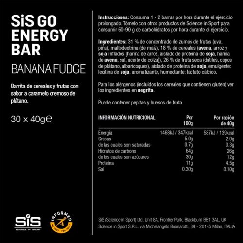 Caja SIS Barra Go Energy Plátano Caramelo 40g 30U