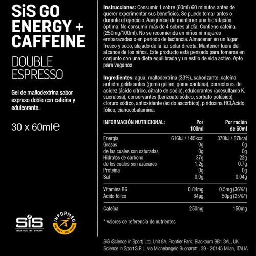 Caja SIS Gel Go + Cafeína Doble Espresso 60ml 30U