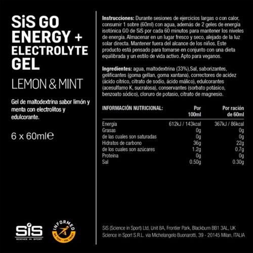 Caja SIS Gel Go + Electrolitos Limón & Menta 60ml 30U