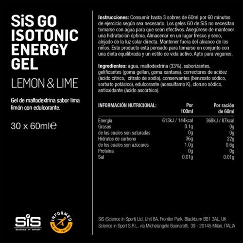 Caja SIS Gel Go Isotónico Lima & Limón 60ml 30U