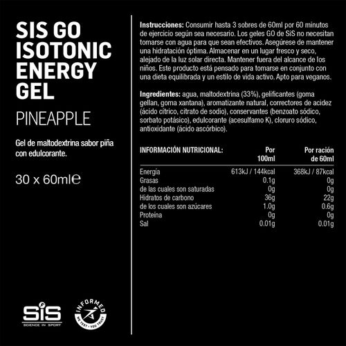 Caja SIS Gel Go Isotónico Piña 60ml 30U