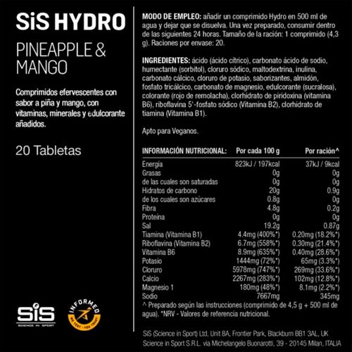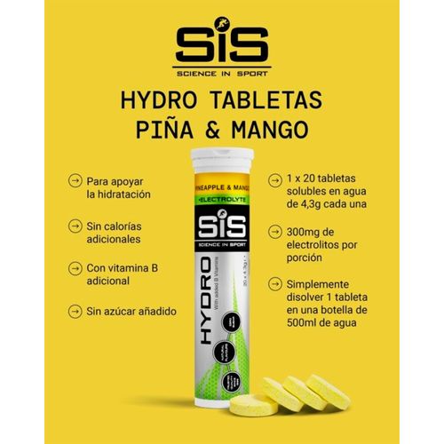 Caja SIS Tabletas Electrolitos Hydro Piña & ManGo 20T 8U