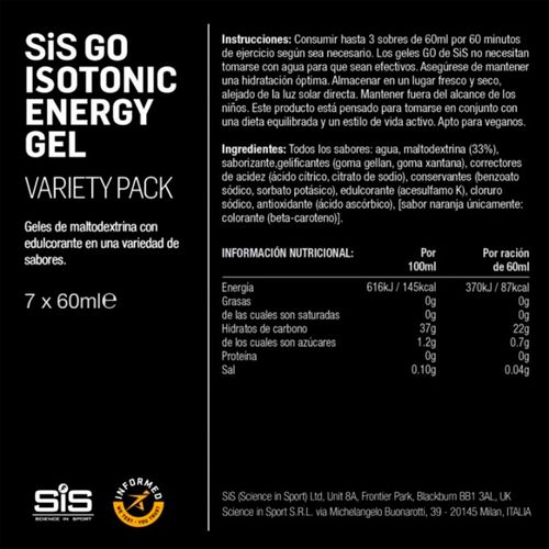 Gel SIS Go Isotónico Pack Sabores Mixto 60ml 7U